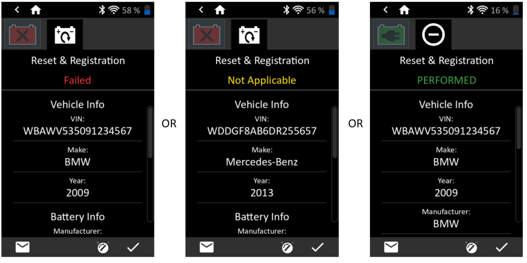 - Battery Registration Failed (An option to Retry or Skip is available)