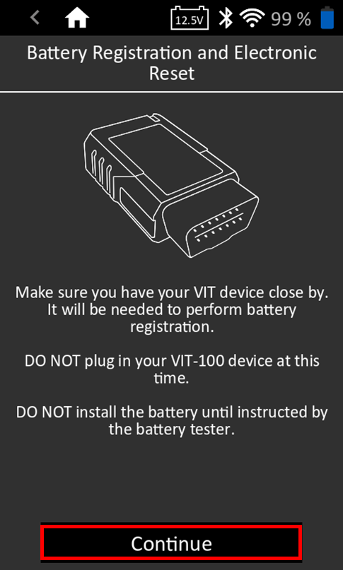 - Follow the Battery Registration Vehicle Setup instructions exactly as shown on the JDT.