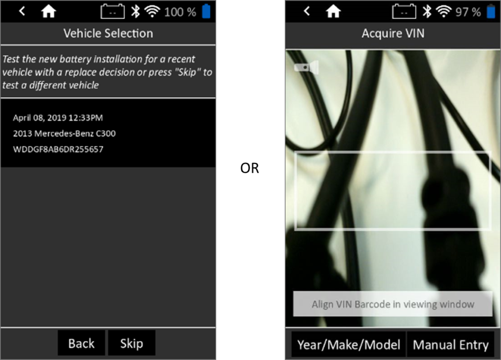 - Enter the vehicle’s VIN or select the vehicle from the Vehicle Selection screen